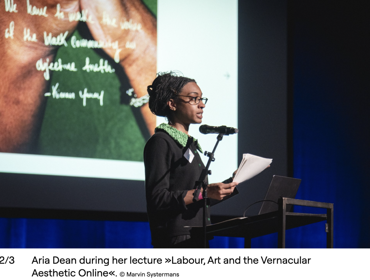 • Dean, Aria. “Labour, Art, and the Vernacular Aesthetic Online.” Lecture, Digital Interventions: Bodies, Infrastructures, Politics, Collaborative Research Centre (CRC) Intervening Arts, HAU Hebbel am Ufer, Berlin, 9 May 2025.