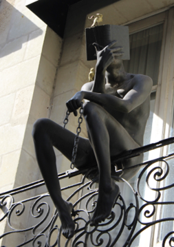 “Le liseur aux canaris”, creation of the artist-designer Stéphane Phélippot, rue de la Fosse, Nantes