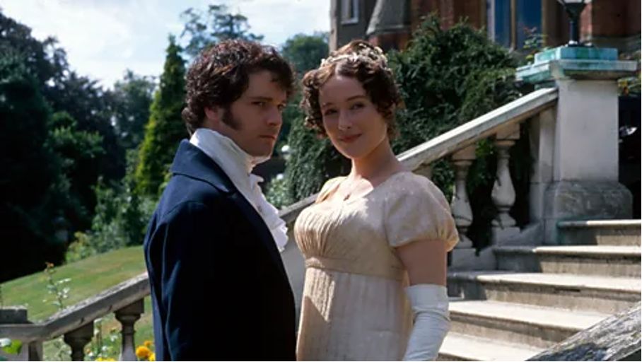 The BBC adaptation of Pride and Prejudice, released in 1995, is often considered the definitive screen version of the novel. Directed by Simon Langton and written by Andrew Davies, the series consists of six episodes, which allows it to follow the book very closely. Most scenes, dialogues, and narrative developments are taken directly from Austen’s text, sometimes even using entire passages of dialogue. This format gives the story time to breathe. Secondary characters such as Charlotte Lucas, Lydia Bennet, or Mr Collins are fully developed, which helps viewers understand the social stakes of marriage and reputation at the time. The slow evolution of Elizabeth and Darcy’s relationship feels natural and convincing, as misunderstandings and emotional changes are given enough space to unfold. The pacing reflects the rhythm of the novel, making the series particularly appreciated by readers who value fidelity to the source material. One of the most important elements of this adaptation is Colin Firth’s portrayal of Mr Darcy. His performance played a major role in redefining the character in popular culture. Darcy is shown as reserved, socially awkward, and emotionally restrained, but also deeply sensitive and principled. This interpretation humanises the character and makes his emotional growth more visible. The famous lake scene, in which Darcy unexpectedly emerges from the water in a wet white shirt, became iconic and contributed greatly to the series’ popularity. While not present in the novel, the scene visually expresses Darcy’s vulnerability and emotional confusion, showing how even faithful adaptations sometimes add new elements to enhance storytelling. Beyond its romantic appeal, the BBC series also presents a detailed reconstruction of Regency England. Costumes, locations, and social manners are carefully depicted, reinforcing a strong feeling of authenticity. This attention to historical detail aligns with the BBC’s long tradition of literary adaptations and reflects a certain cultural prestige associated with classic literature. Even today, the 1995 series remains a reference point. Many later adaptations are inevitably compared to it, especially when it comes to the character of Mr Darcy.